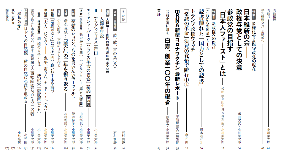 一人の批評家が責任をもって文化総合雑誌を主宰する――これは文化の強度における重大な指標です。平成から令和の現在に至るまで、日本の知性の劣化と出版メディアの排他性とは想像を越えて進みました。知の結節点は学者、ジャーナリストではなく、批評家にしか担えません。研究所の機関誌という形から始め、私は日本の知の栄光と自由の言論空間の再生へと船出しようと思っています。ご愛読、ご支援を心から乞う次第です。